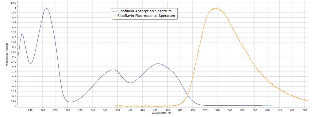 Fluorescence and fluorescence spectroscopy have already been adequately described in earlier blog articles, so I will not elaborate further here. In order to measure riboflavin fluorescence we will need a pure sample of the vitamin that we can use as a standard, as well as a typical dietary supplement that contains the vitamin.