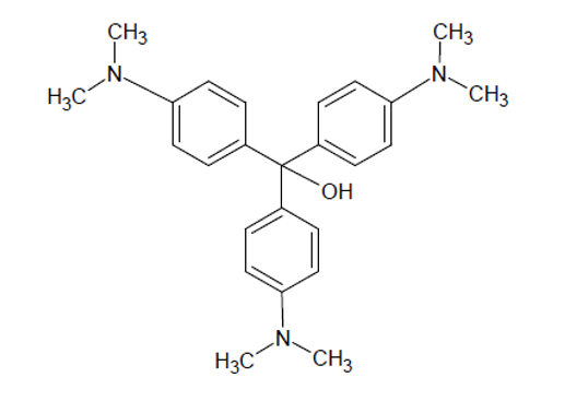 The dye belongs to a class of intensely coloured organic compounds called the triphenylmethane dyes. These dyes were mentioned, albeit very briefly, in an earlier article some time ago, because they are used to formulate blue coloured fluorescent highlighter pens. The chemical structure and colour of the dye both depend on pH. This makes the dye a very useful acid−base indicator in addition to its dyeing ability as a common stain in cell biology as well as other applications.