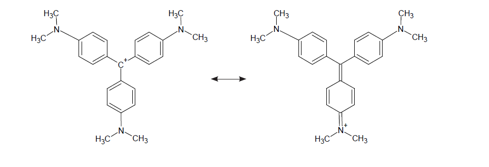 For crystal violet, there are several resonance forms, two of which are shown here: